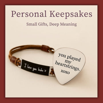 Whether it’s for a yourself, your partner, a parent, or a memory that still lives close, these keepsakes hold words that often don’t fit on a card. We’ll help shape the words — or engrave what you already have in mind.