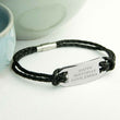 The Stellan bracelet is made for that kind of message. Woven black leather. Twin knotted strands. A smooth magnetic clasp that holds up to 30 characters of your own words. That’s all it needs.