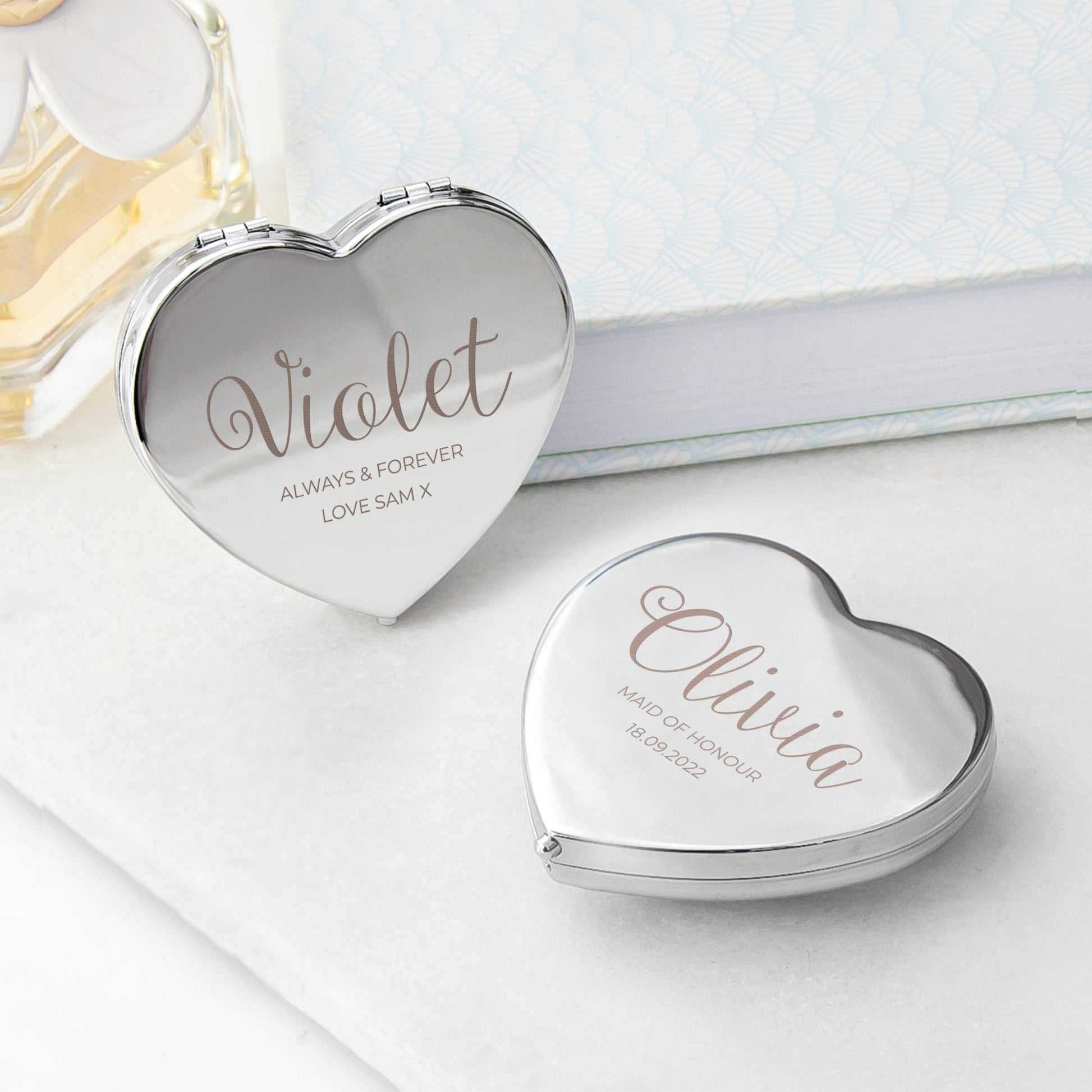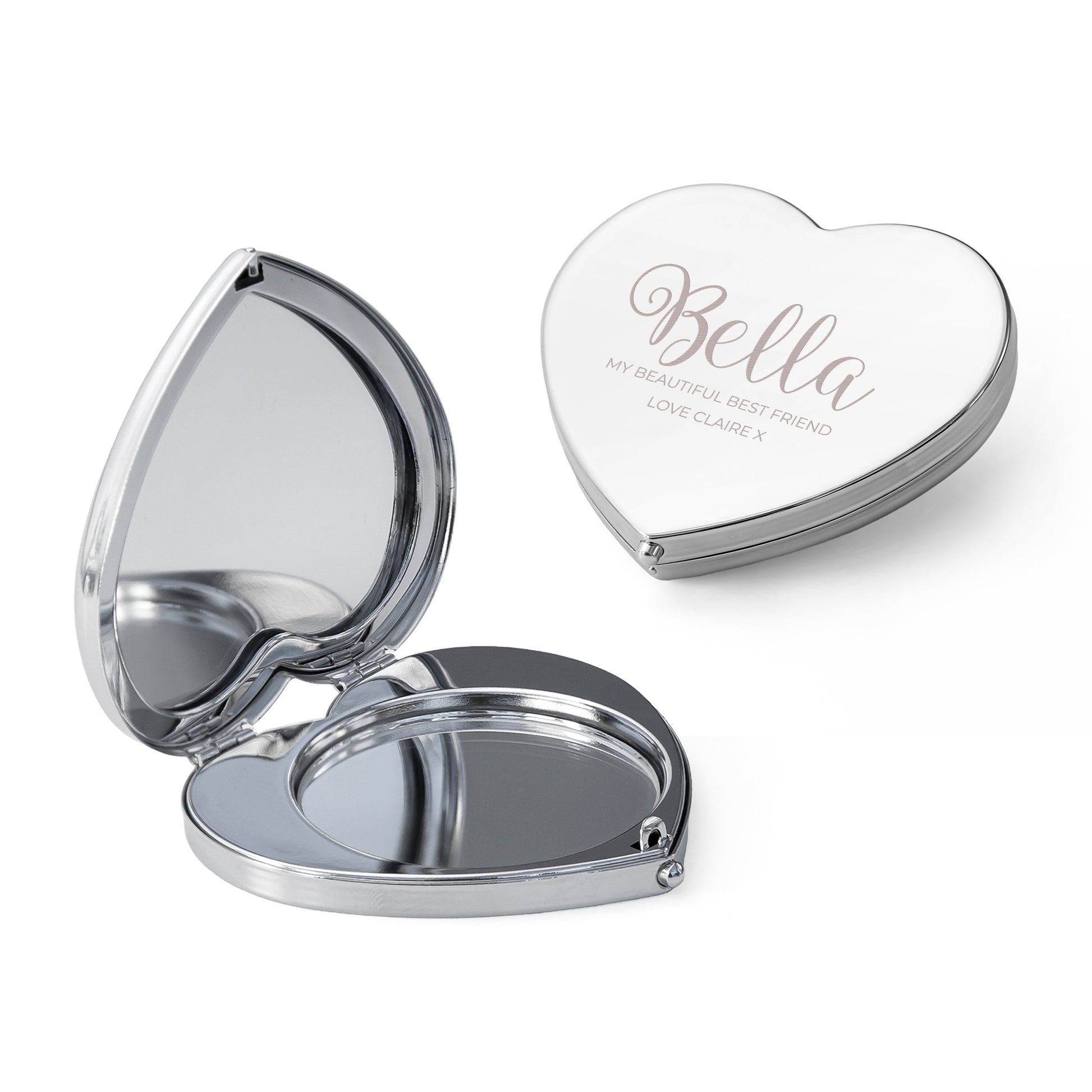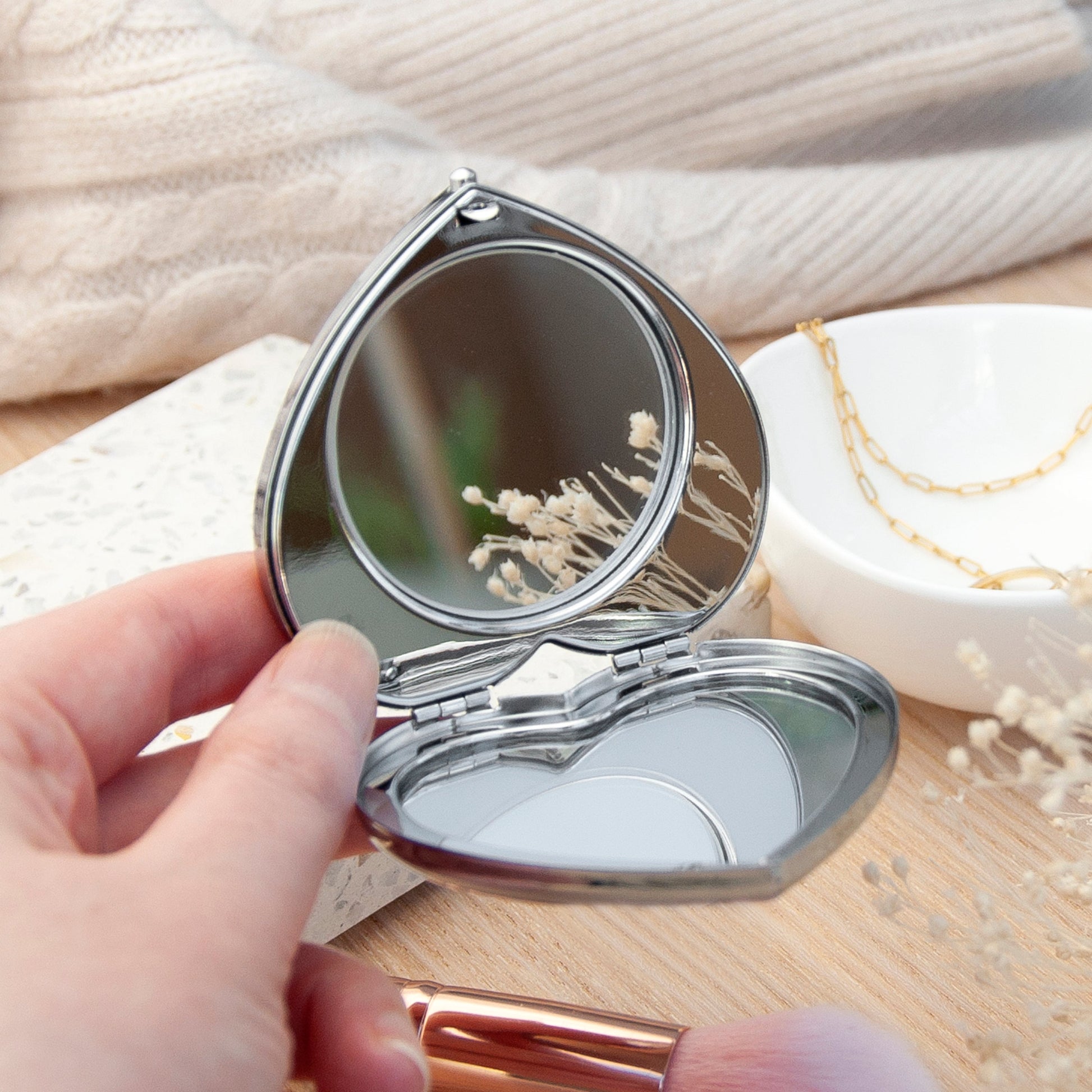 This silver heart mirror keeps your words close — tucked into handbags, suit pockets, or memories.