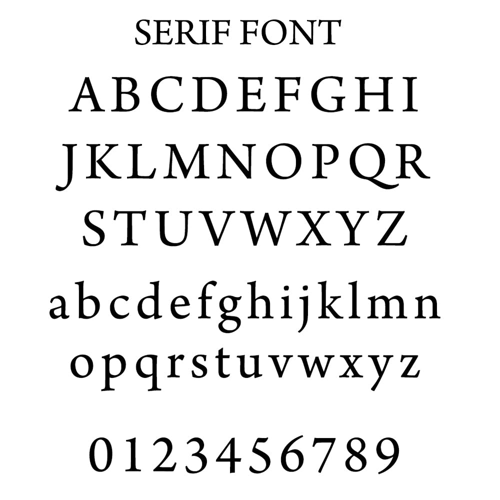 Select one of two fonts for your personalisation: Sans Serif or Serif.