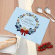 Transform kitchen essentials into a cherished keepsake with this personalized glass worktop saver. Customized with your family name and adorned with an intricate Nordic wreath on a winter blue canvas, it safeguards countertops while seamlessly transitioning between chopping surface, serving board, and decorative centerpiece. Hand-finished by skilled artisans, this versatile piece brings both protective function and festive charm to any home.