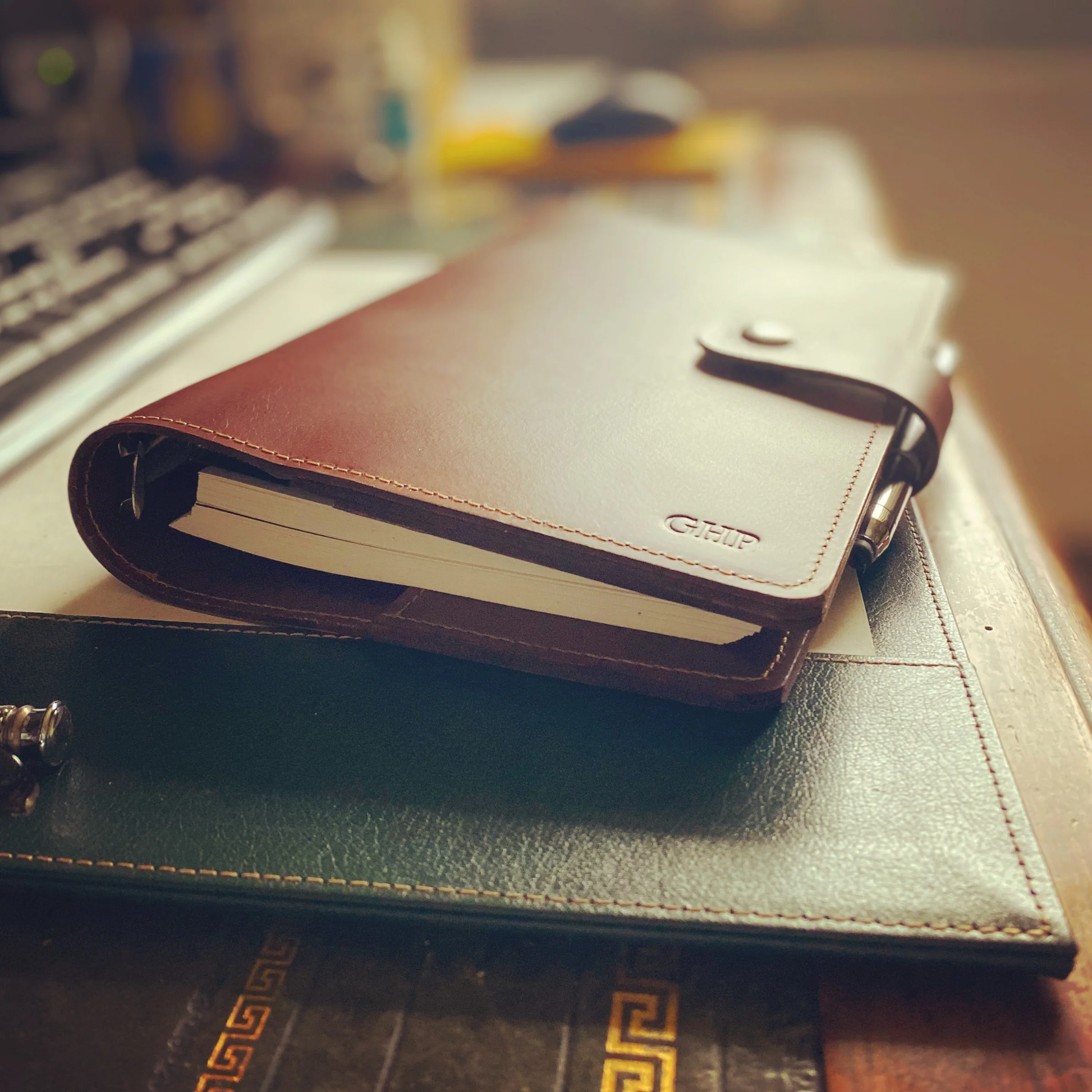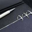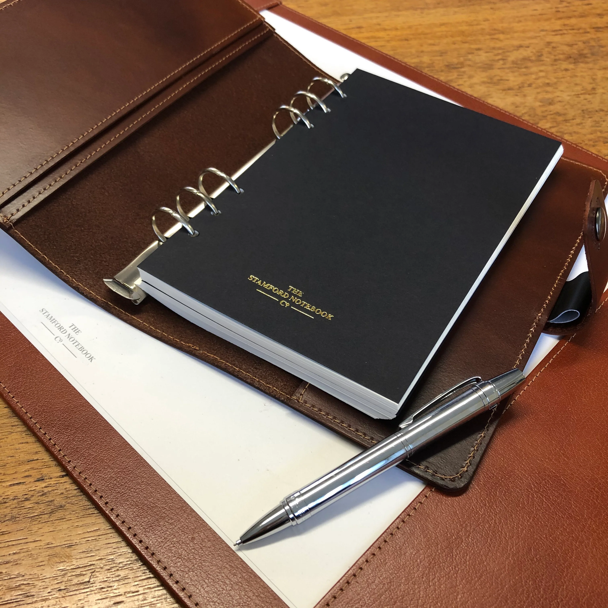 The six-ring binder holds two 60-page notebook inserts—lined for notes and plain for sketches or journaling—and both are refillable, so the gift keeps giving. Stitched leather pockets and a pen loop keep essentials close, while smooth, fountain-pen-friendly paper ensures every word feels special.